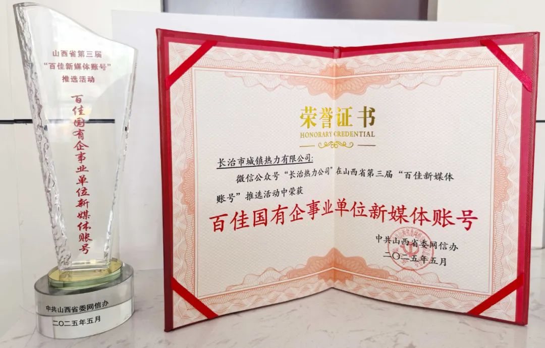 • 喜報!長治熱力公司微信公眾號榮獲山西省第三屆“百佳國有企事業單位新媒體賬號”長治市